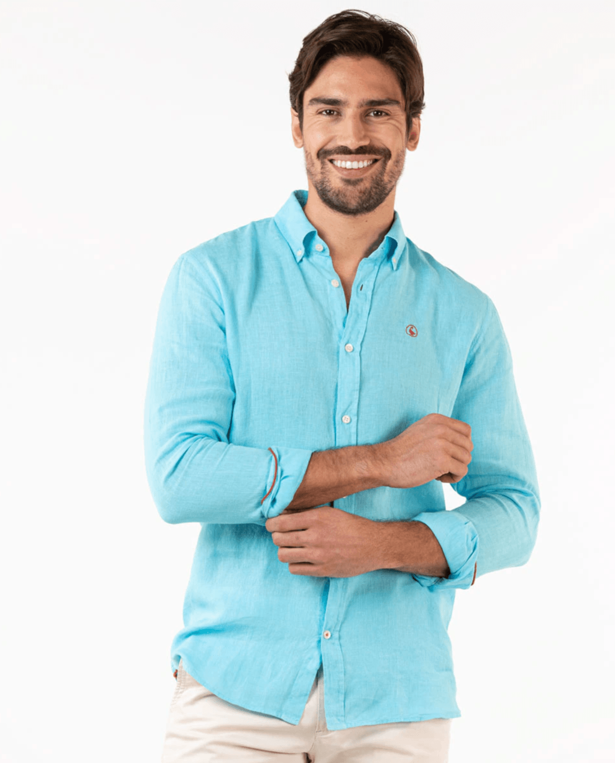Apuesta también por las camisas color turquesa que vuelven con mucha fuerza durante este verano Puedes combinar este tipo de camisas con jeans pero también con bermudas o como no, con los pantalones chinos que se llevan en tonos como el tierra o el azul y que te pueden quedar muy bien si le añades una camisa estampada y en tonos similares.